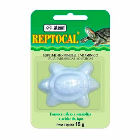 Alcon Reptocal é um suplemento mineral vitamínico que após colocado na água do terrário, vai se dissolvendo e liberando o cálcio que impede o amolecimento das carapaças das tartarugas, além de neutralizar os ácidos gerados pelos objetos dos animais.