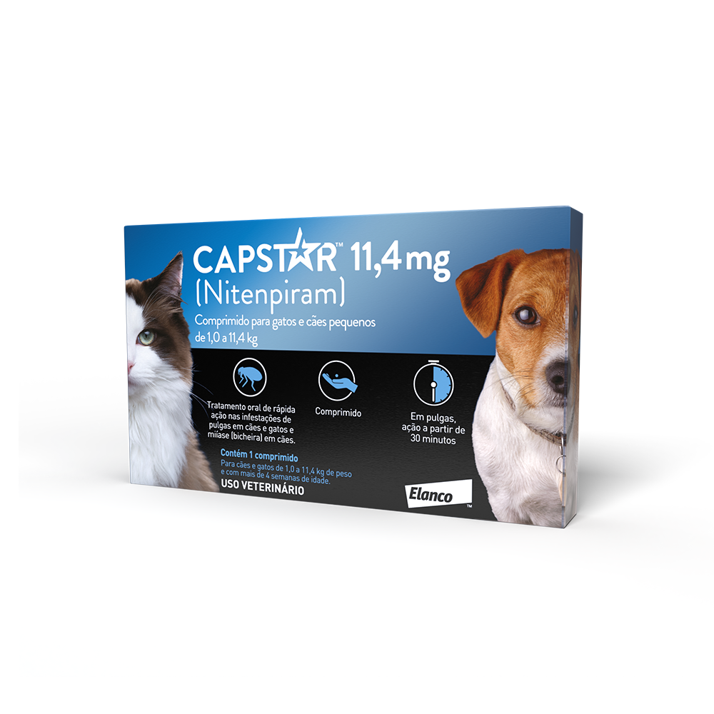 O Antipulgas Capstar 11,4mg Cães e Gatos Novartis é indicado em todos os casos em que se deseja uma rápida e segura eliminação das pulgas adultas, que estejam infestando cães e gatos com mais de quatro semanas de idade.