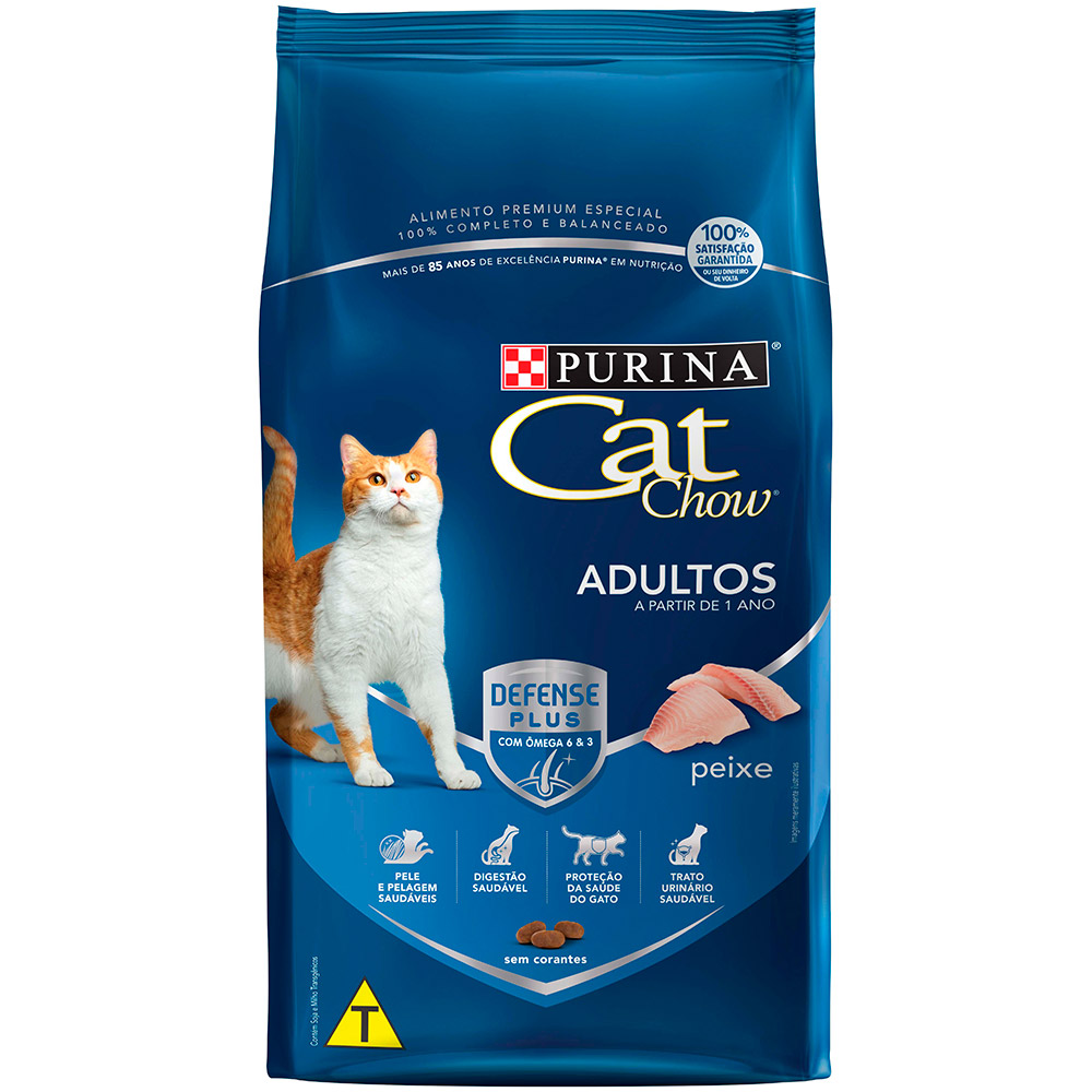 Cat Chow® Adultos peixes e frutos do mar oferece um alimento projetado exclusivamente para gatos adultos (de 1 a 7 anos de idade), que ajuda no desenvolvimento saudável do coração e no fortalecimento do sistema imunológico. PURINA® CAT CHOW® oferece ao seu gato um alimento rico em vitaminas e antioxidantes que traz um equilíbrio adequado de proteínas, gorduras e carboidratos para, assim, proporcionar a ele uma vida mais saudável e feliz.