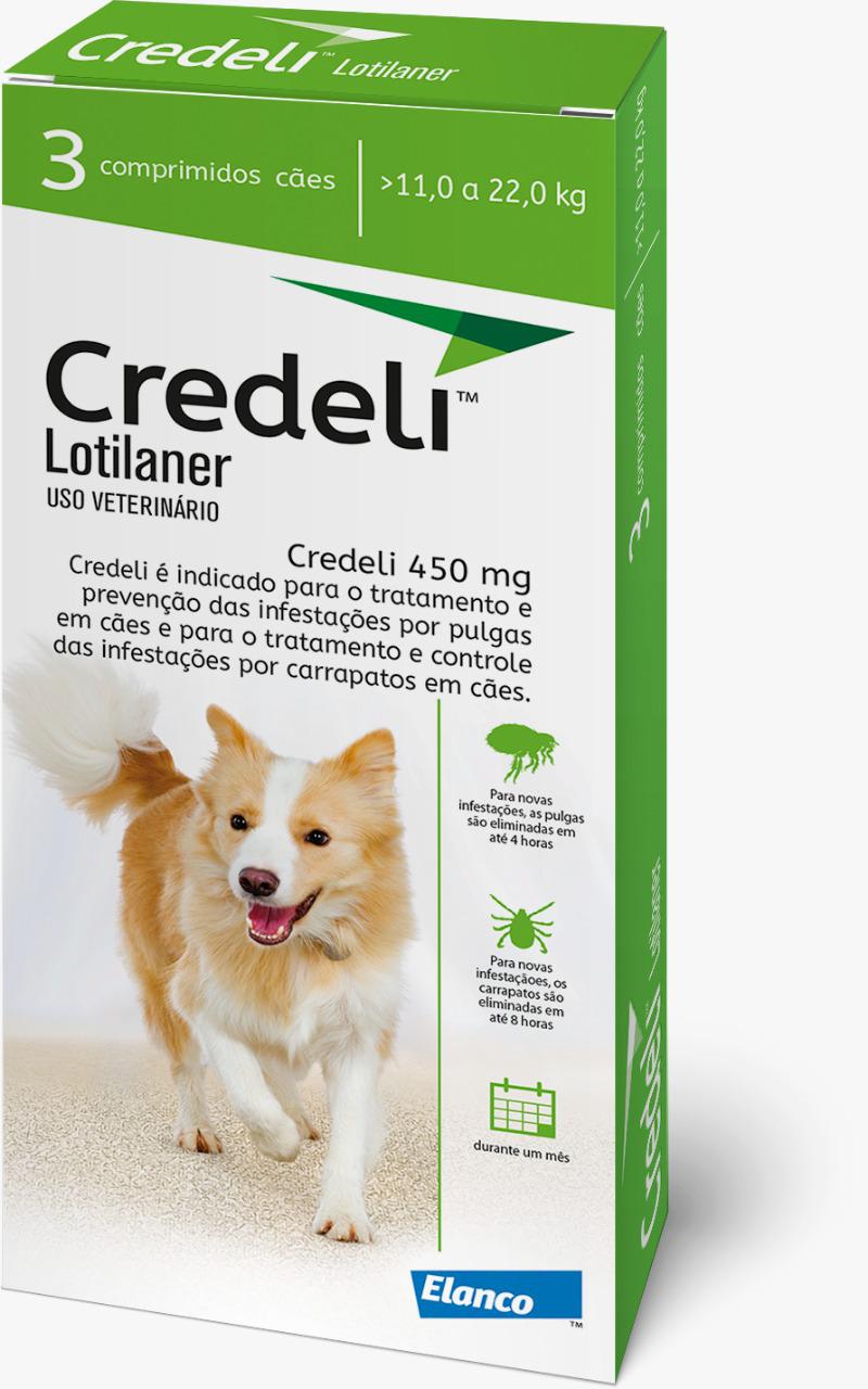 Credeli é um comprimido mastigável, pequeno e saboroso, que atua rapidamente para proteger cães filhotes e adultos contra carrapatos e pulgas por um mês inteiro. Indicado para cães entre 11,0 a 22,0kg.