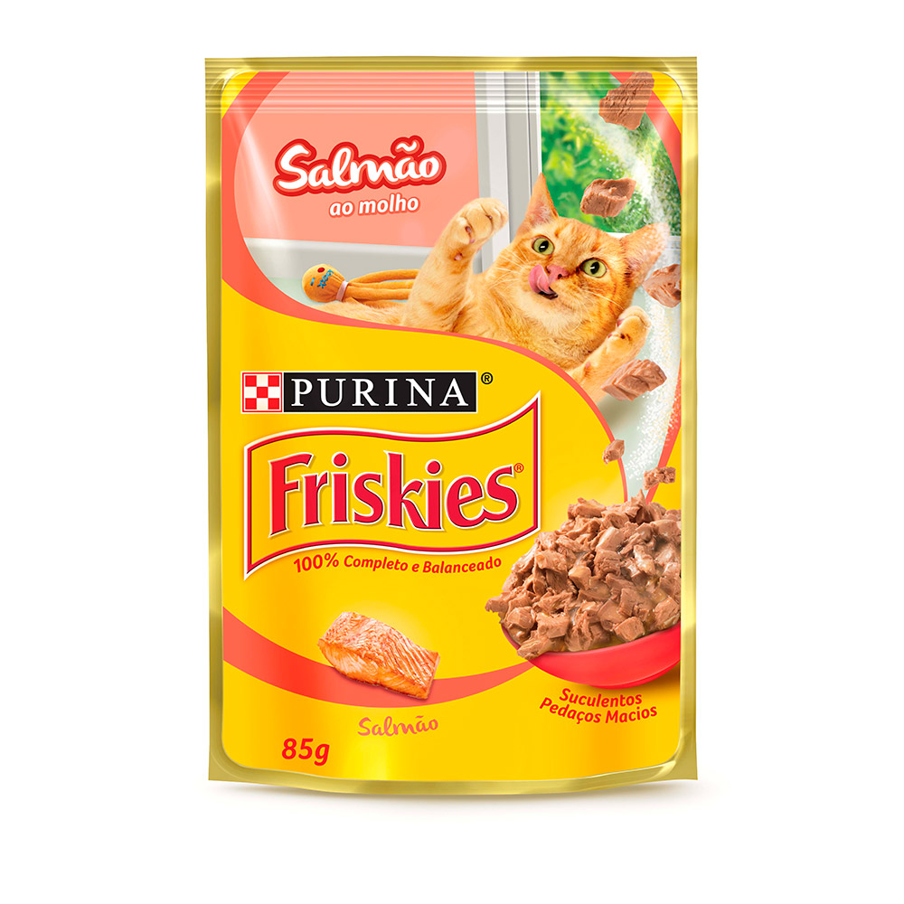 Composição Básica: salmão, fígado de frango, fígado suíno, miúdos de suínos, glúten de trigo, proteína concentrada de soja, carcaça de frango, amido de milho, dextrose, cloreto de sódio (sal comum), fosfato bicálcico, cloreto de potássio, carbonato de cálcio, água, taurina, glicina, vitaminas (A, D3, E, K3, B12, mononitrato de tiamina, suplemento de riboflavina, cloridrato de piridoxina, niacina, biotina, ácido fólico, pantotenato de cálcio, cloreto de colina), minerais (sulfato de zinco, proteinato de zinco, sulfato ferroso, sulfato de cobre, proteinato de cobre, sulfato de manganês, proteinato de manganês, iodato de cálcio, selenito de sódio), corantes (vermelho 3, óxido de ferro amarelo e dióxido de titânio).