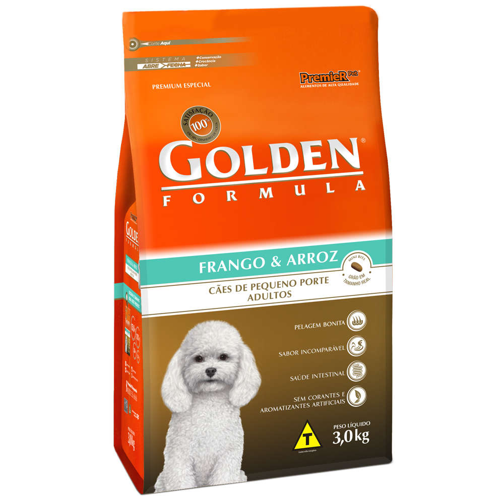 Golden Formula Adultos Frango & Arroz Mini Bits é um alimento Premium Especial desenvolvido para cães adultos de pequeno porte. Os cães são essencialmente carnívoros e digerem muito melhor alimentos de origem animal. Apresenta grãos adequados para animais de pequeno porte, facilitando a mastigação. Golden Formula Adultos Frango & Arroz Mini Bits é um produto completo e visa, acima de tudo, proporcionar aos cães o nível ideal de todos os nutrientes que eles necessitam para uma vida longa e saudável.