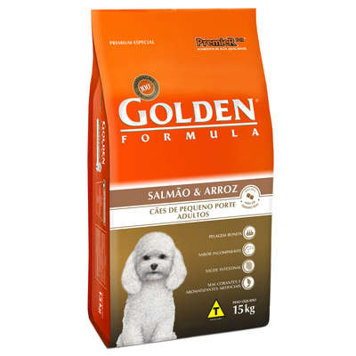 Golden Formula Adultos Salmão & Arroz Pequeno Porte é um alimento Premium Especial desenvolvido para cães adultos exigentes de pequeno porte. Os cães são essencialmente carnívoros e digerem muito melhor alimentos de origem animal. Apresenta grãos adequados para animais de pequeno porte, facilitando a apreensão e mastigação. Golden Formula Adultos Salmão & Arroz Mini Bits é um produto completo e visa, acima de tudo, proporcionar aos cães o nível ideal de todos os nutrientes que eles necessitam para uma vida longa e saudável.