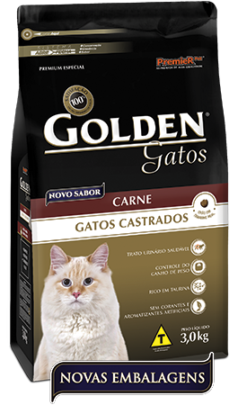 Procedimento cada vez mais recomendado pelos médicos veterinários, a castração promove inúmeros benefícios, mas também alterações fisiológicas que exigem alguns cuidados extras com a dieta do seu gato. Especialmente formulada para atender às necessidades dos gatos castrados, Golden Gatos Castrados Carne auxilia na prevenção da obesidade e no cuidado com o trato urinário, garantindo uma nutrição ótima e saudável.