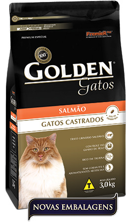 Procedimento cada vez mais recomendado pelos médicos veterinários, a castração promove inúmeros benefícios, mas também alterações fisiológicas que exigem alguns cuidados extras com a dieta do seu gato. Especialmente formulada para atender às necessidades dos gatos castrados, Golden Gatos Castrados Salmão auxilia na prevenção da obesidade e no cuidado com o trato urinário, garantindo uma nutrição ótima e saudável.