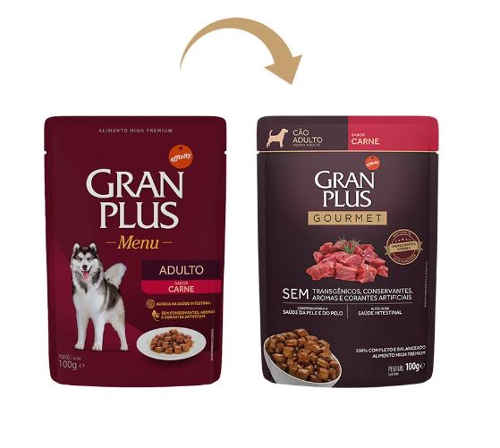 O sachê Gran Plus Adultos apode ser misturada com ração seca. Neste caso, reduza as quantidades dos alimentos para equilibrar as quantidades.