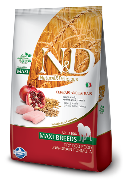Alimento completo e balanceado para cães adultos de raças grandes e gigantes.