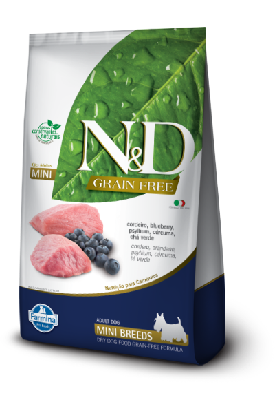 Cordeiro, Blueberry, Psyllium, Cúrcuma e Chá Verde.