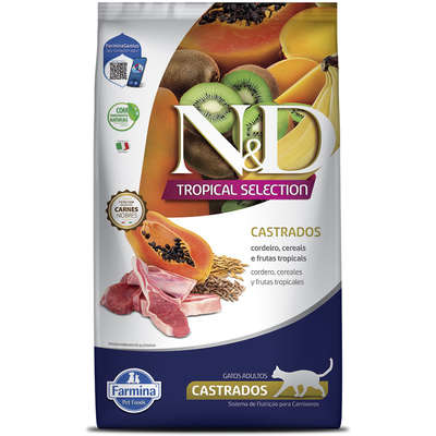 Ração Seca N&D Tropical Selection Cordeiro, Cereais e Frutas Tropicais para Gatos Adultos Castrados