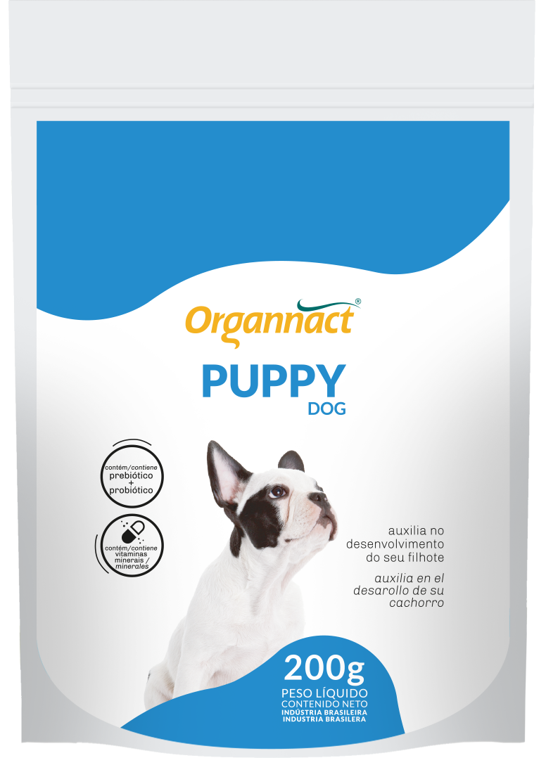 PUPPY DOG é um suplemento alimentar completo, específico para filhotes. Contém aminoácidos em alta concentração e equilíbrio, além de minerais e vitaminas hidro e lipossolúveis.