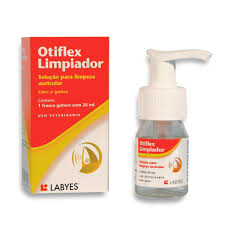 Otiflex Limpiador, solução para a limpeza dos ouvidos dos cães e gatos. Por seu poder de limpeza e propriedades acidificantes, dissolve o cerume e fluidifica os detritos.