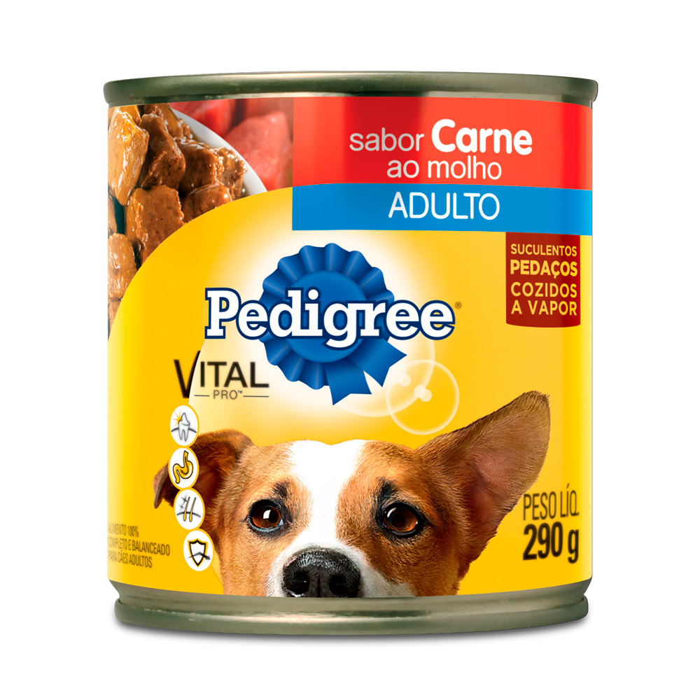 A Ração Pedigree Carne Ao Molho Lata para Cães Adultos é um alimento feito com deliciosos pedaços de carne cozidos a vapor que proporcionam aos cães todo o sabor que eles adoram.