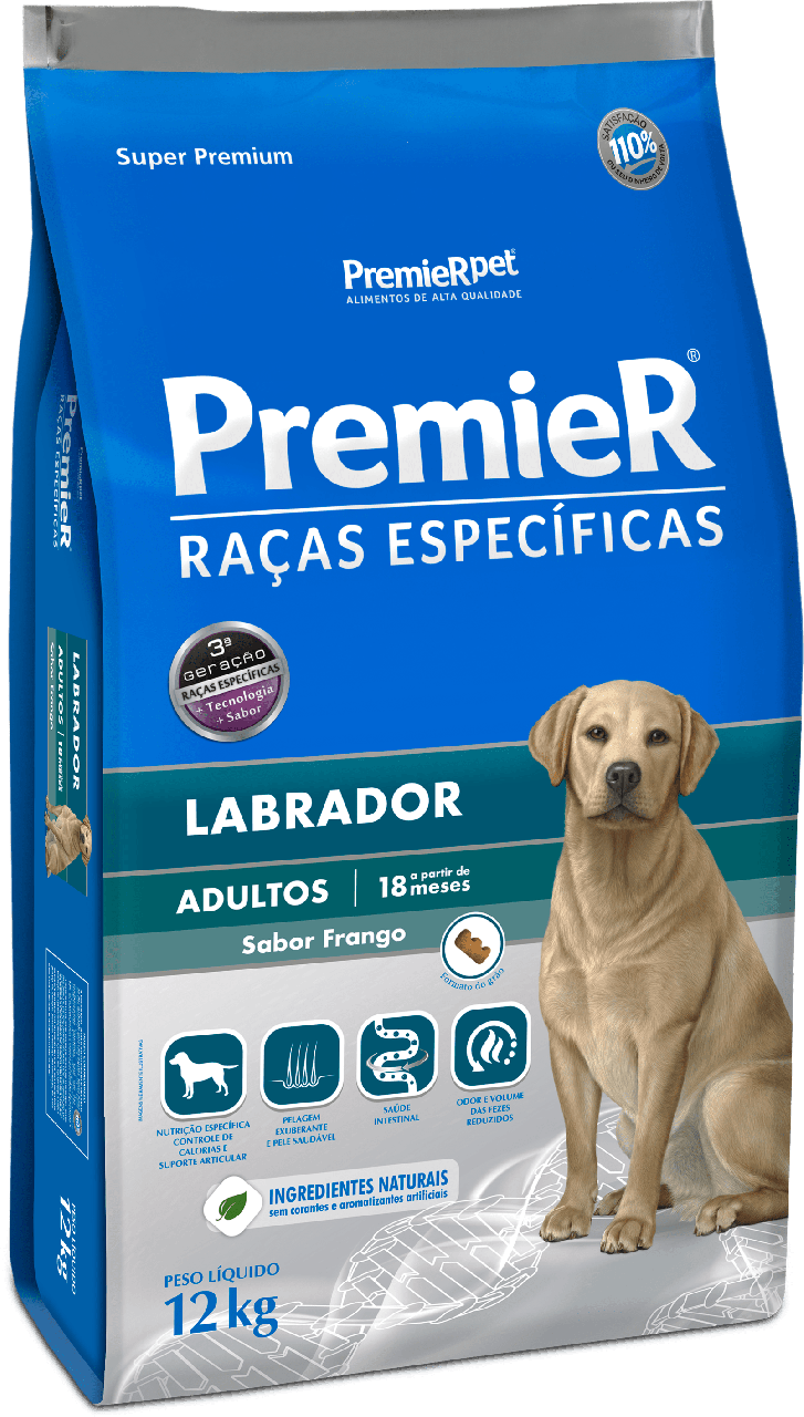 Cada raça possui suas particularidades e se beneficia de cuidados especiais. Pensando nestas necessidades a Premier Pet criou Premier Raças Específicas, a primeira linha mundial de nutrição específica para raças. Desenvolvida com ingredientes nobres e alta tecnologia, Premier Raças Específicas oferece benefícios exclusivos que visam minimizar os principais problemas de saúde das raças e auxiliar para o pleno desenvolvimento de suas características típicas desejáveis. PremieR Labrador foi formulada a partir deste conceito e oferece tudo o que esta raça precisa para manter sua saúde e beleza. Oferece ainda redução do volume e odor de fezes minimizando possíveis inconvenientes de uma convivência tão próxima entre os cães e seus proprietários