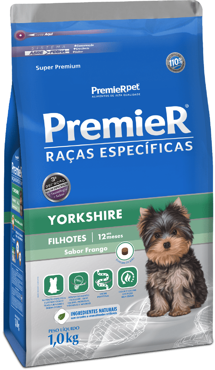Cada raça possui suas particularidades e se beneficia de cuidados especiais. Pensando nestas necessidades a Premier Pet criou Premier Raças Específicas, a primeira linha mundial de nutrição específica para raças. Desenvolvida com ingredientes nobres e alta tecnologia, Premier Raças Específicas oferece benefícios exclusivos que visam minimizar os principais problemas de saúde das raças e auxiliar para o pleno desenvolvimento de suas características típicas desejáveis. PremieR Yorkshire foi formulada a partir deste conceito e oferece tudo o que esta raça precisa para manter sua saúde e beleza. Oferece ainda redução do volume e odor de fezes minimizando possíveis inconvenientes de uma convivência tão próxima entre os cães e seus proprietários.