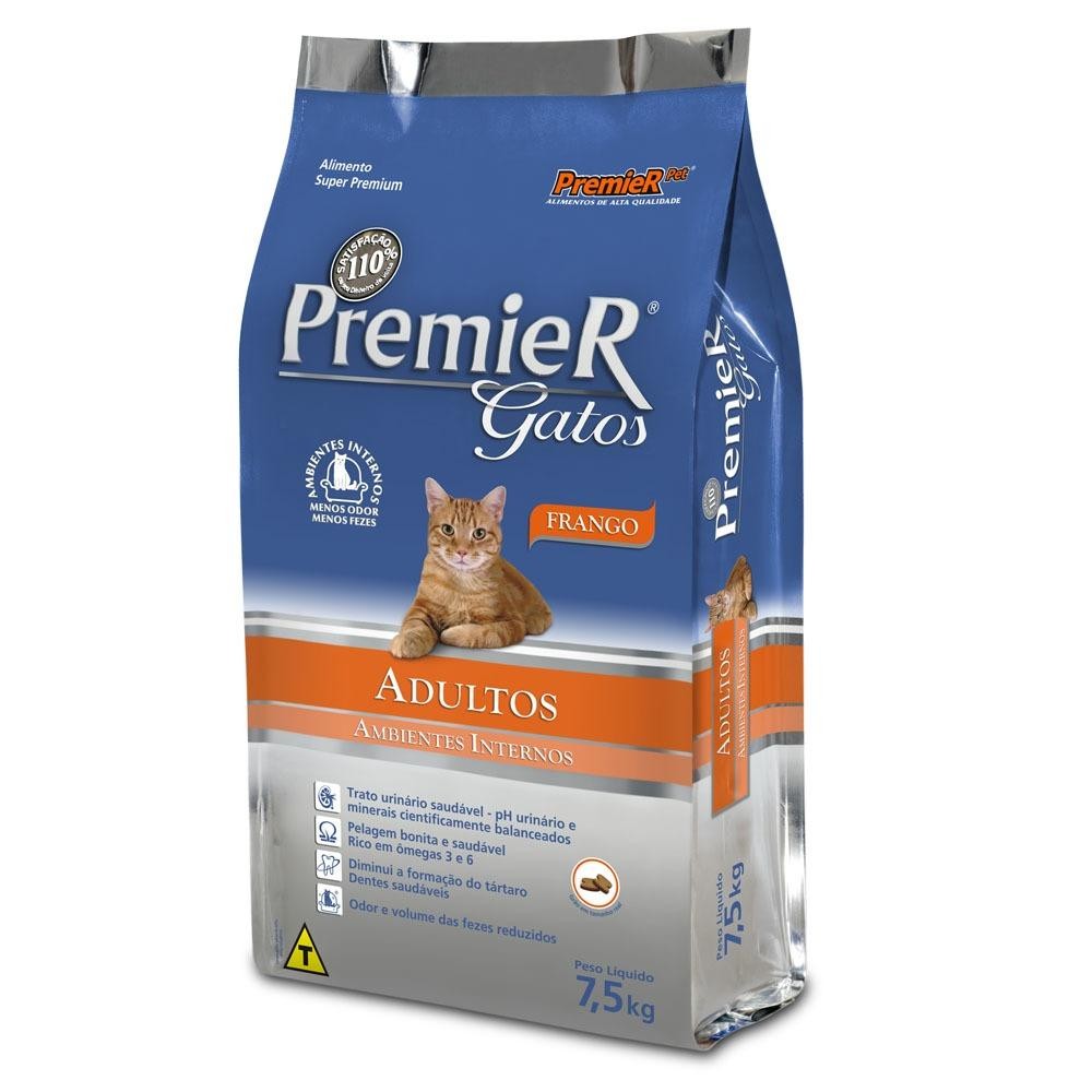 PremieR oferece ao seu gato adulto uma refeição especial todos os dias. Além de um sabor insuperável, ele apresenta uma combinação exclusiva de ingredientes nobres que deixam a pelagem muito mais bonita e brilhante. Para a saúde do trato urinário, PremieR Gatos Adultos Frango acidifica naturalmente a urina, controlando a formação dos indesejáveis cálculos urinários. PremieR Gatos Adultos Frango conta também com uma poderosa ação antitártaro, proporcionando uma ótima saúde bucal.