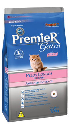 Premier Gatos Filhotes Pelos Longos Sabor Salmão 1,5KG