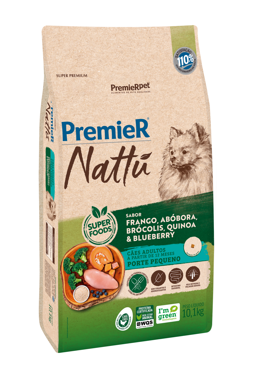 | Pensada para proporcionar uma alimentação cada vez mais saudável para seu melhor amigo, a linha PremieR Nattu possui ingredientes selecionados, nutritivos e satisfação comprovada. Com uma fórmula sem corantes e aromatizantes, PremieR Nattu Abóbora é recomendado para a alimentação de cães adultos de pequeno porte e traz em sua base de ingredientes Frango, Abóbora, Brócolis, Quinoa e Blueberry, itens de alta densidade nutricional, que oferecem muitos nutrientes e poucas calorias, proporcionando uma dieta mais equilibrada para seu cão. Uma exclusividade deste alimento são os ovos utilizados na formulação, provenientes do sistema de criação Cage Free, no qual as aves possuem liberdade de movimento, com acesso a ninhos, permitindo assim sua total locomoção. Se você busca o alimento certo para uma dieta natural e repleta de benefícios para seu pet, não deixe conhecer todos os produtos de nossa linha Nattu. |