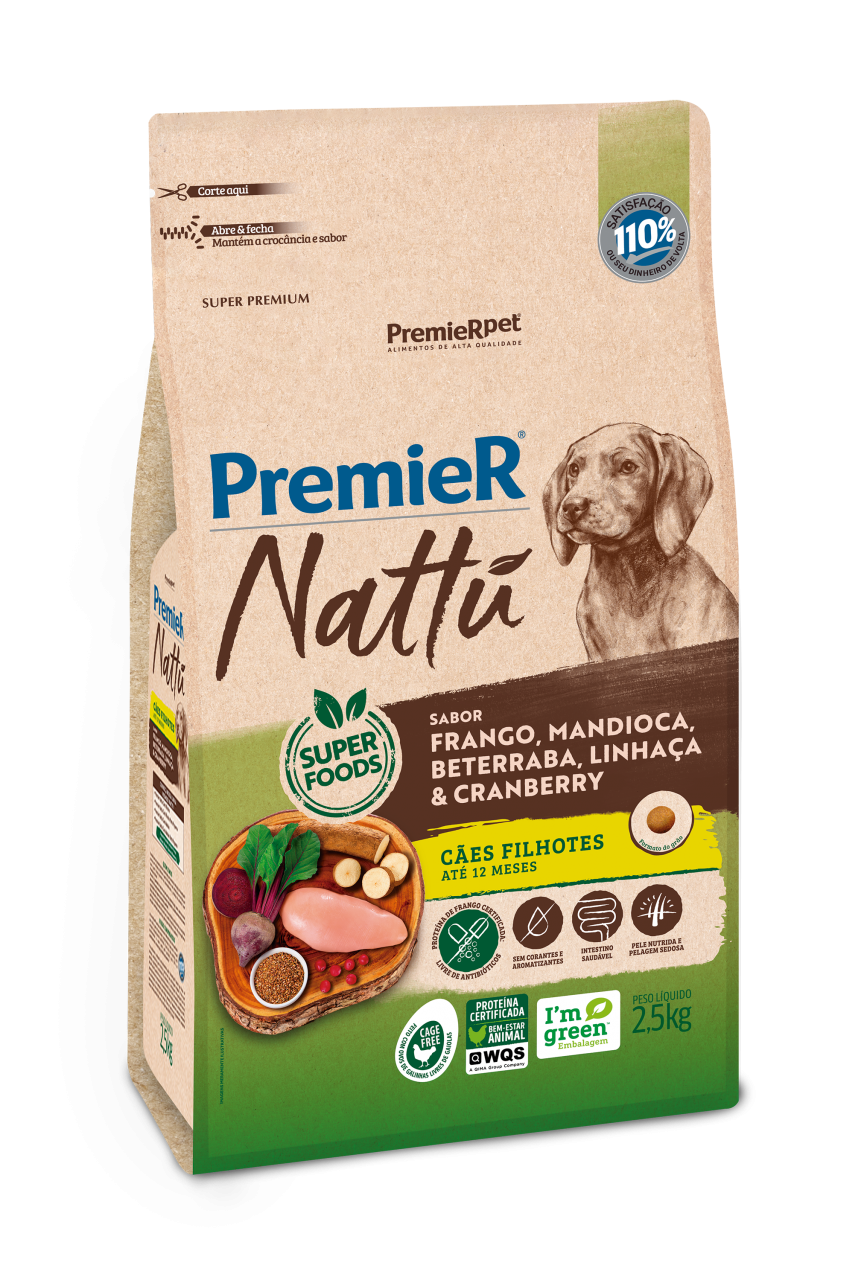PREMIER NATTÚ FILHOTES SABOR FRANGO, MANDIOCA, BETERRABA, LINHAÇA E CRANBERRY 2,5 KG