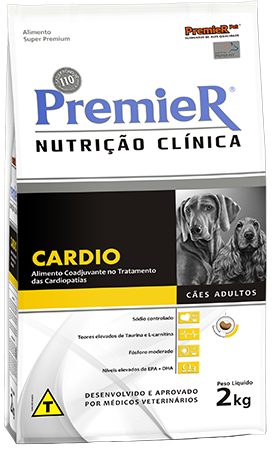 PremieR Nutrição Clínica Cães Cardio é um alimento auxiliar ao tratamento da doença/insuficiência cardíaca de cães. Além do tratamento prescrito pelo médico veterinário, uma alimentação especialmente formulada pode ser benéfica para pacientes com doença cardíaca. Os objetivos com o uso da dieta são: prover quantidade adequada de calorias, evitar deficiências e excessos nutricionais, oferecer potenciais benefícios de determinados nutrientes, diminuir as doses e o número de medicamentos que o animal necessita, reduzir complicações, melhorar a qualidade de vida e diminuir a velocidade de progressão da doença. Para doença cardíaca, este alimento deve ser utilizado sob orientação de um profissional como único alimento por toda a vida do animal.