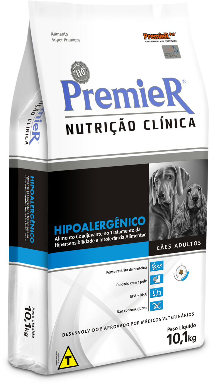 PremieR Nutrição Clínica Cães Hipoalergênico é um alimento auxiliar ao tratamento da hipersensibilidade e intolerância alimentar a determinados ingredientes. Nos casos de hipersensibilidade ou intolerância alimentar, é fundamental substituir a dieta por um alimento com menor potencial de causar alergia, reduzindo assim a possibilidade de ocorrência dos sintomas. Este alimento deve ser utilizado sob orientação de um profissional pelo período mínimo de 3 a 8 semanas, se os sinais de intolerância e/ou hipersensibilidade desaparecerem, pode ser utilizado continuamente.