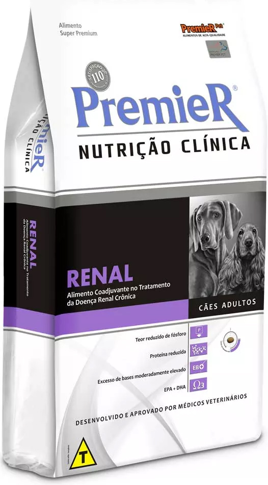PremieR Nutrição Clínica Cães Renal é um alimento auxiliar ao tratamento da doença renal crônica e na diminuição da incidência de cálculos renais de oxalato de cálcio em pacientes nefropatas. Além do tratamento prescrito pelo médico veterinário, algumas alterações na alimentação podem ser benéficas para pacientes com doença renal crônica. Os objetivos da dieta são: minimizar os sintomas decorrentes da retenção de substâncias tóxicas e perda de elementos importantes na urina, diminuir a progressão da doença, proteger o tecido renal que ainda permanece saudável, prevenir a formação de cálculos urinários de oxalato de cálcio. Para doença renal crônica, este alimento deve ser utilizado sob orientação de um profissional como único alimento por toda a vida do animal.