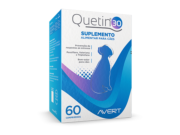 QUETIN SUPLEMENTO ALIMENTAR PARA CÃES, AUXILIA NA PREVENÇÃO DE RESPOSATAS AO ESTRESSE A BASE DE PASSIFLORA, VALERIANA E TRIPTOFANO