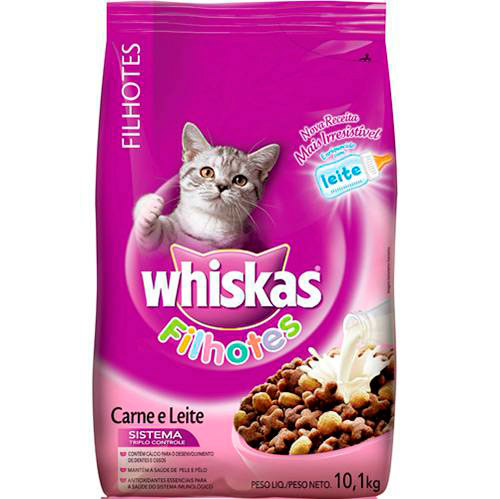 Ração Whiskas Carne e Leite para Gatos Filhotes é mais saborosa com recheio muito mais cremoso e muito mais sabor em sua composição, ainda ajuda no combate ao desenvolvimento das doenças do trato urinário.