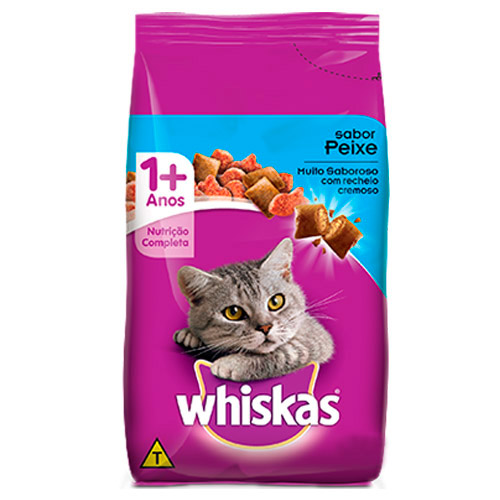 A Ração Whiskas Peixe para Gatos Adultos é mais saborosa com recheio muito mais cremoso e muito mais peixe em sua composição, ainda ajuda no combate ao desenvolvimento das doenças do trato urinário.